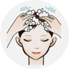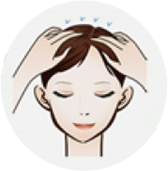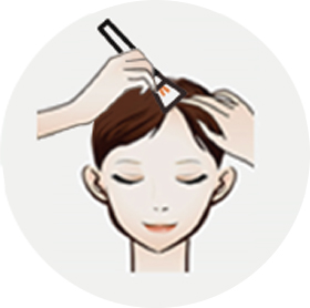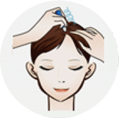 샴푸 전 모발 사이사이 가르마를 타며 두피전체에 두피팩을 골고루 도포